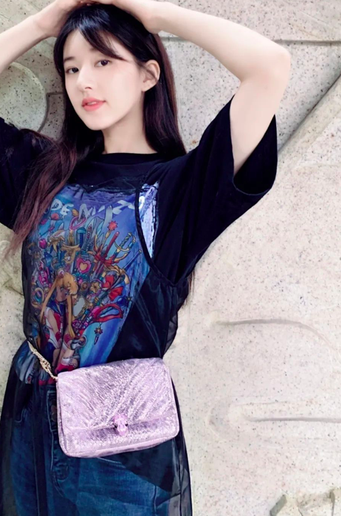 纯白色蕾丝连体裤温柔又有质感。利用腰带提升腰线的连体卷边短裤,性感中又不失率性。一字肩的设计,在“7哥”美貌的加持下,更加妩媚可人。七夕约会斩男必备。