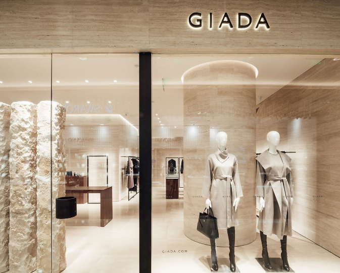 焕新的GIADA久光百货精品店在建筑风格上与GIADA米兰旗舰店一脉相承,并将成为GIADA在中国第二家配备GIADA House“许愿池”的精品店。店铺四面由来自意大利的罗马洞石铺就而成,浅色的纹理烘托出浑然天成的蚀刻感以及典雅醇厚的历史底蕴。千年自然风化的多洛米蒂岩石将店内的陈列空间进行了巧妙的区隔,视觉上的透视与店内光影交映成趣,打造出空间上别致的动态感,使现代与隽永,古老与摩登在静谧优雅的空间内实现了完美的交融。
