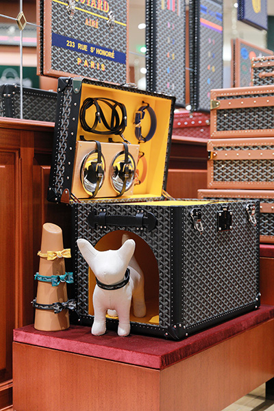 步入店内,映入眼帘的是各具特色的Goyard匠心之作:数款独具特色的手提包、旅行系列、宠物系列和个性化手绘设计产品,每件作品都呈递着品牌的精神与理念,诉说着品牌执着的初心与隽永的风格。