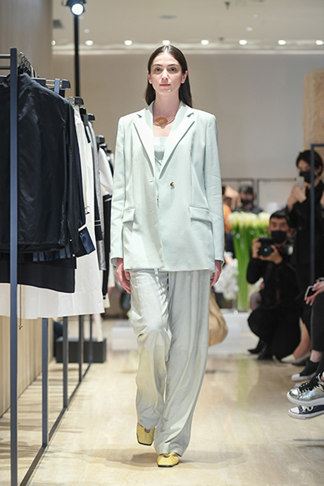 剪彩仪式过后,GIADA精品店内举行时装秀,展示GIADA 2021春夏系列秀款。GIADA创意总监Gabriele Colangelo本季的创作灵感取撷于Gjon Mili,Rebecca Horn,Naum Gabo三位艺术家的作品,以自然为境,探索与环境的永恒连结。一如既往,GIADA 2021春夏系列以至臻工艺打造顶级面料,在静谧的意象中,传递万物温暖且流动的诗意。