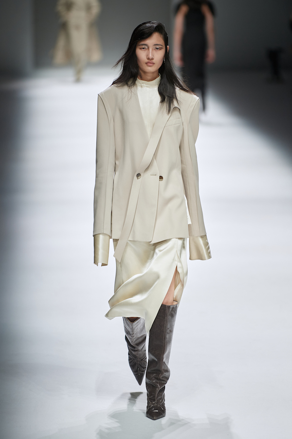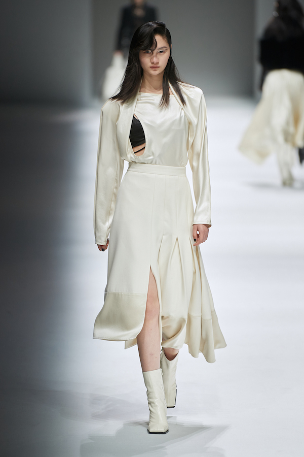 (2021年4月9日,上海)上海时装周期间,女性时装品牌YOEYYOU在上海举行时装秀,并发布2021秋冬系列。主题为INDETERMINISM无秩之序的秋冬系列,从“虚构”与“真实”中汲取灵感,打造了一个简洁利落、立体丰富的全新女性时装系列。