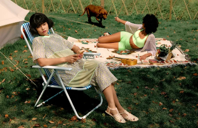 Anna Sui Active 2021SU,由70年代复古元素出发,轻松惬意的针织与镂空,复古雏菊印花的迷离梦幻,波西米亚的流浪姿态,与都市郊野的慢节奏氛围融合,打造了一场如度假电影般的视觉体验。