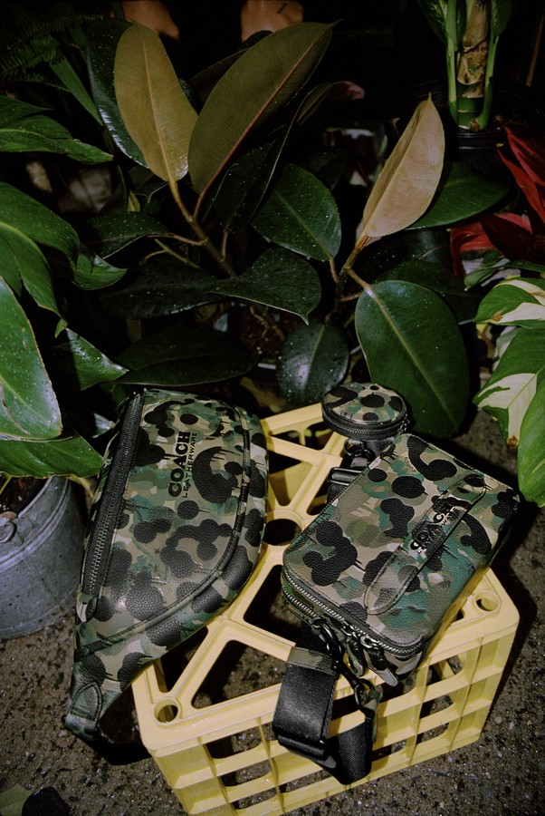 Coach 迷彩印花系列于2015年首次推出,此次全新系列在原有设计中融入荧光元素,并尝试将滴彩手法与传统迷彩相结合,展开全新诠释,传递积极正能量。该系列的产品包含手袋、T恤、运动鞋、运动裤和卫衣。
