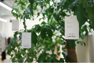视线回到 & Other Stories中国首家线下门店,入口处让人眼前一亮的品牌灵感花车及花束迎接着消费者,并传递对中国女性的美好期许;穿过精致陈列,步入店铺中厅,在枝繁叶茂的& Other Stories许愿树下记录专属心愿,愿在未来与& Other Stories一起让美好故事,持续发生。