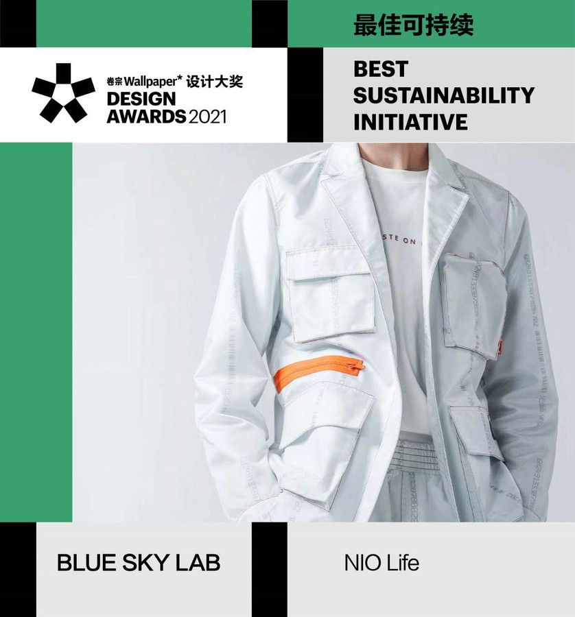 NIO Life旗下全新时尚环保品牌BLUE SKY LAB 荣获卷宗杂志设计大奖(Wallpaper Design Awards 2021)之最佳可持续。