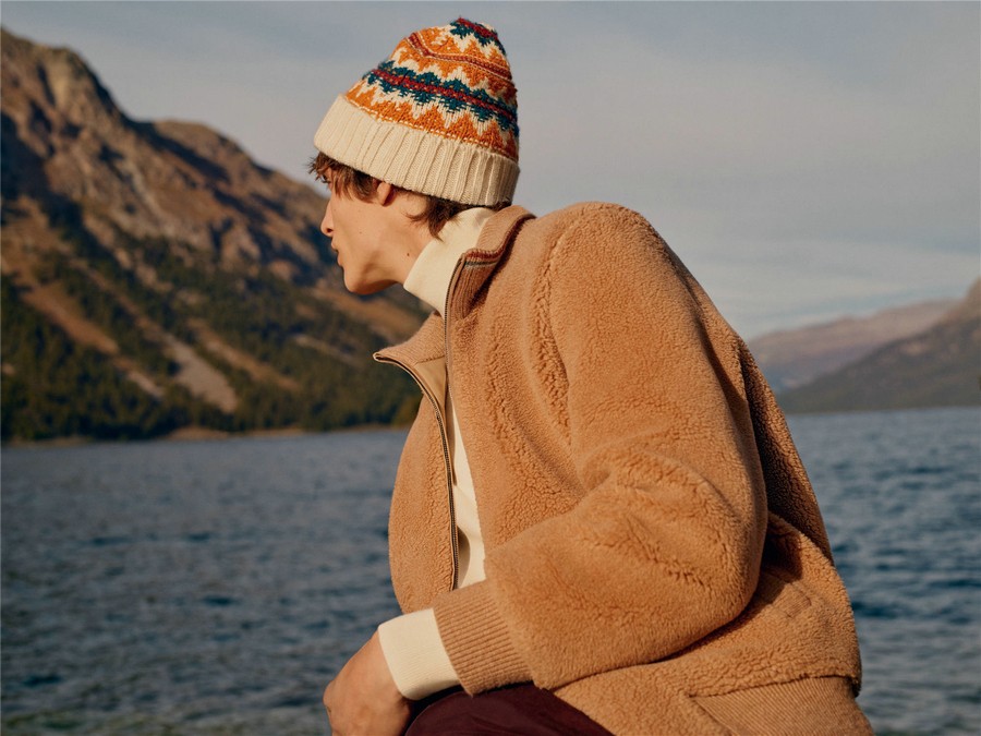 男士系列融合冬日气息与休闲风范:经典Icer夹克采用双面羊绒平纹针织面料进行全新演绎,还有以羊绒和皮毛一体打造的外套衬衫。柔软舒适的Glacier针织衫融入费尔岛提花或菱形图案,而剪裁合身的羊毛羊绒混纺法兰绒长裤则结合可调式抽绳弹力腰带,散发休闲魅力。