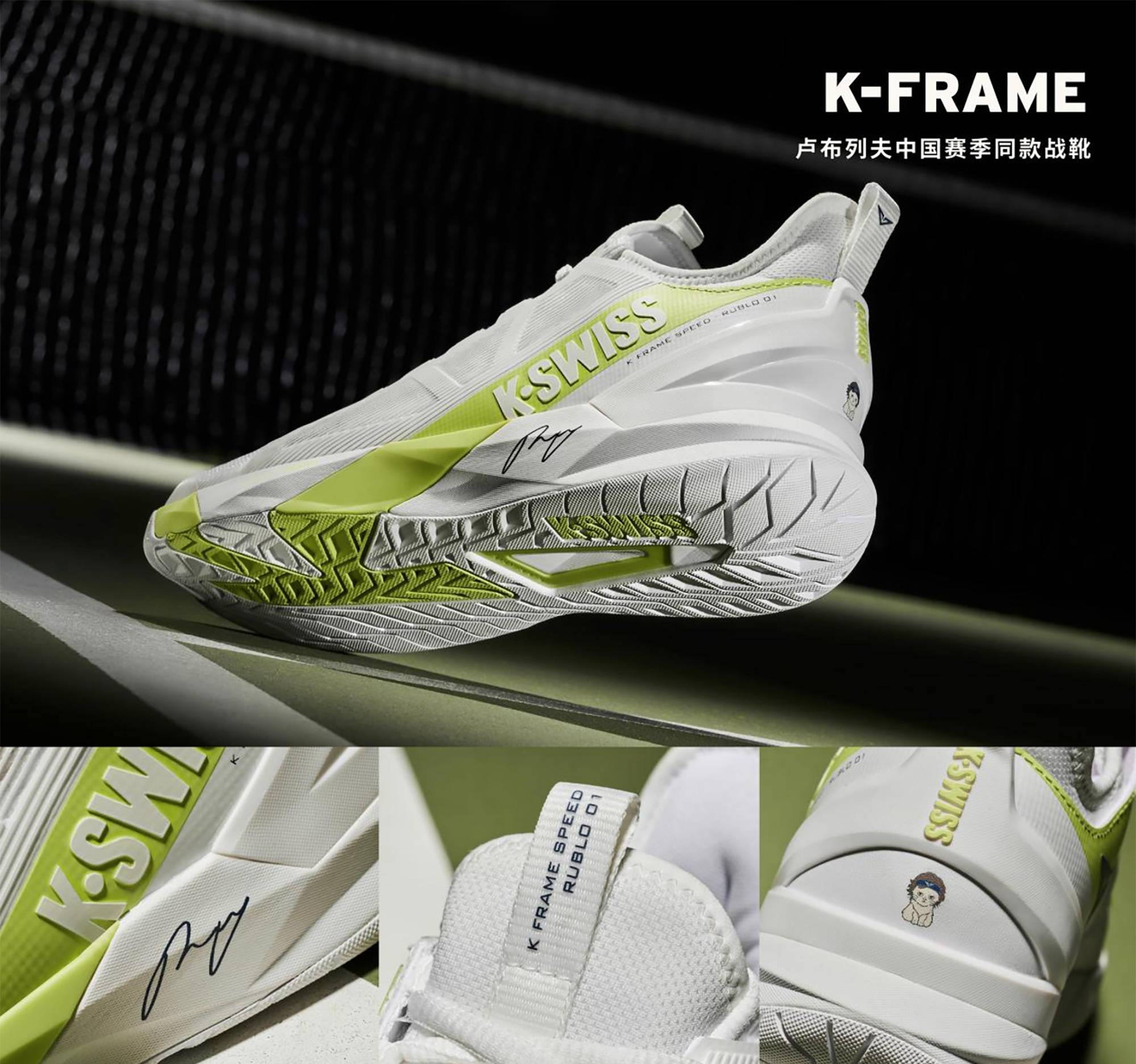 中国赛季,K·SWISS带来张之臻和卢布列夫签名款中国赛季限定专业网球鞋ULTRASHOT 4和K-FRAME SPEED RUBLO。两款球鞋集结两位明星球员的经典代表元素,为喜爱他们的网球爱好者带来专属感超强的性能产品。