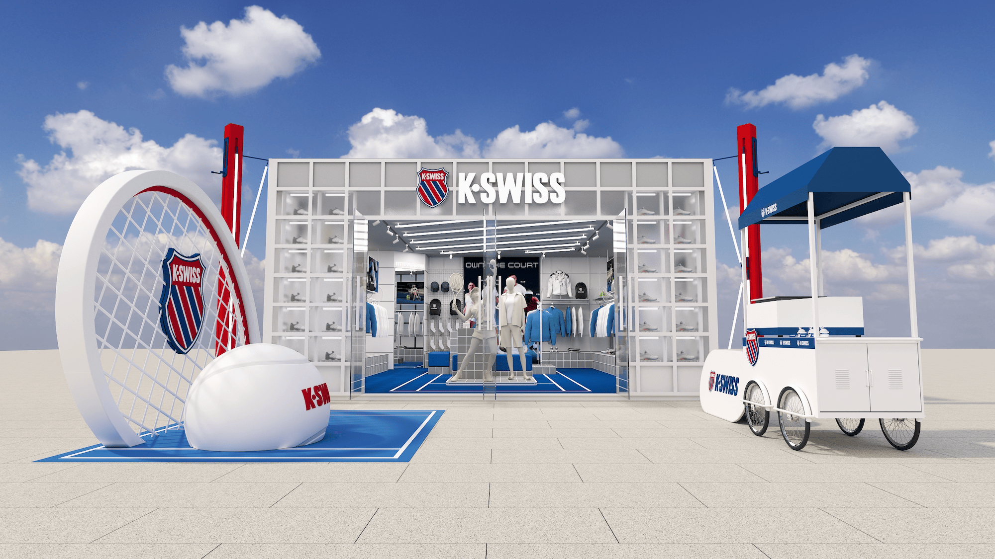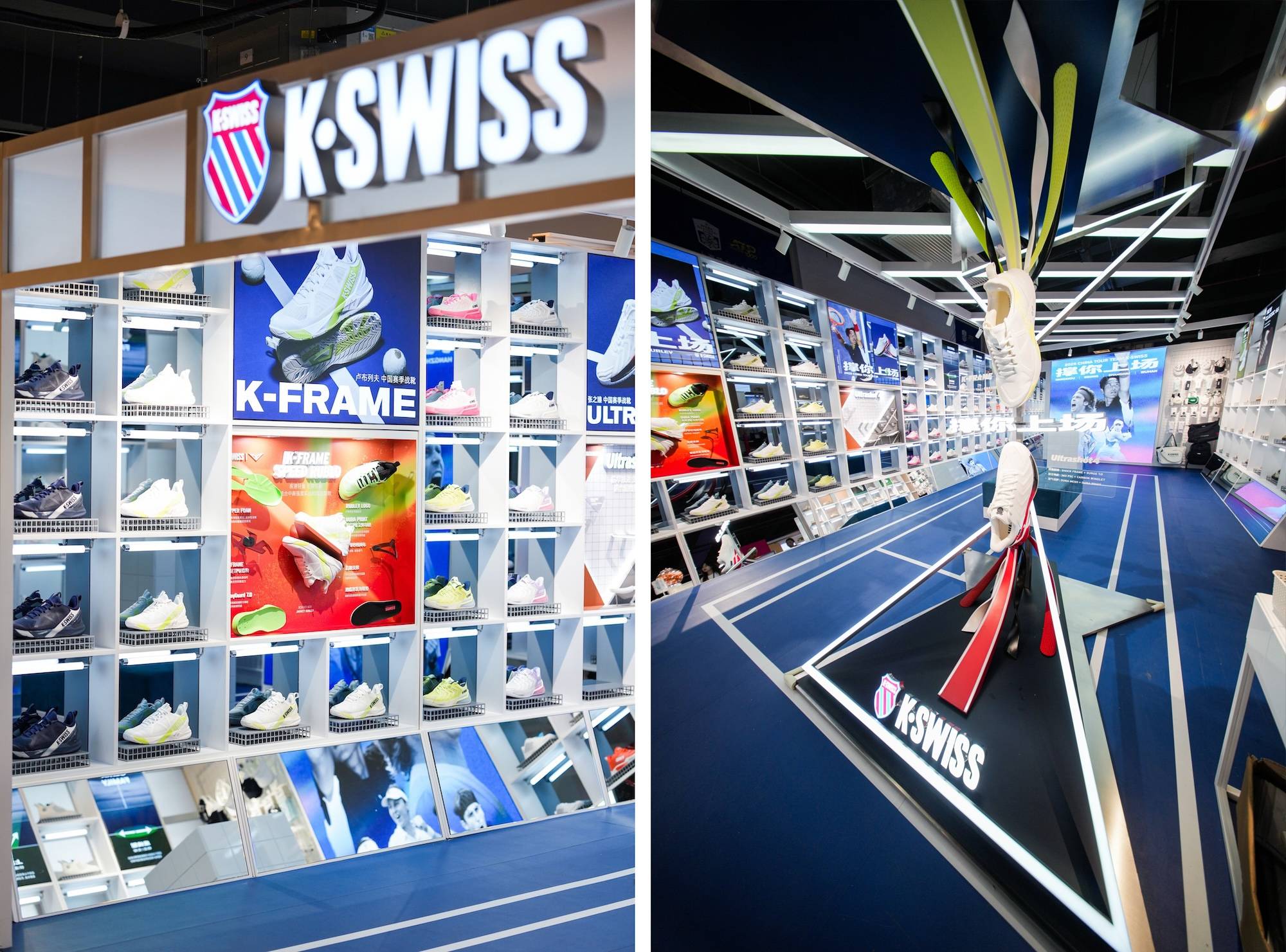 中国网球赛季期间,K·SWISS在杭州、上海、武汉三城开设K·SWISS赛场快闪店,城市徽章、球员同款鞋服、中国赛季专属系列等同步解锁。
