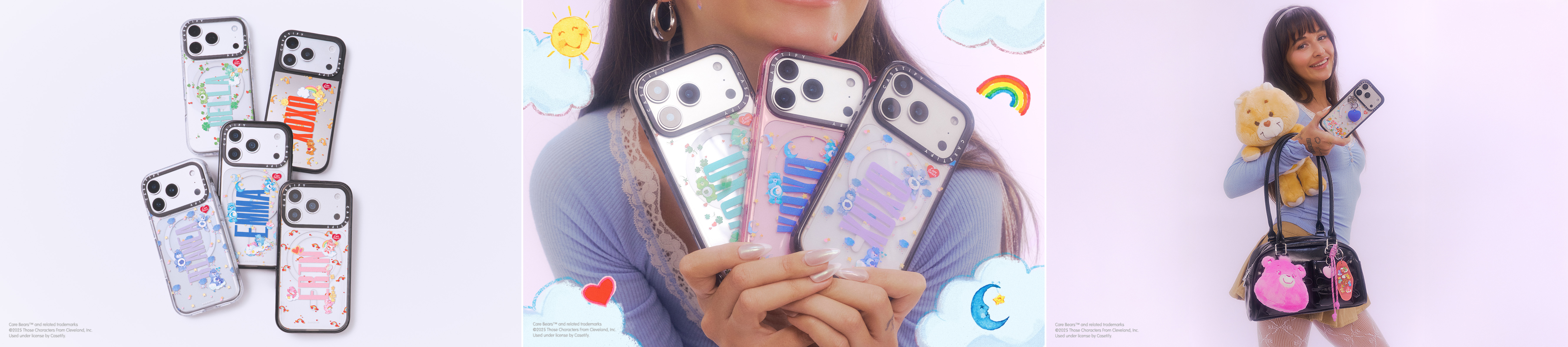 自 1982 年以贺卡形式问世以来,到推出一系列动画及电影作品,Care Bears 凭借可爱的造型和传递爱与积极能量的精神,成为跨越世代的经典符号。来自 Care-A-Lot 世界的熊熊们,以标志性的彩色肚皮徽章和纯粹的情感,持续温暖着全球粉丝。CASETiFY 将 Care Bears 充满爱的世界观融入品牌设计基因,搭配经典怀旧插画风格,唤醒你的温暖记忆。无论是复古拼贴画、梦幻星空还是角色专属设计,系列以流动的色彩与温柔的笔触,呈现一个充满欢乐与坚定友谊的梦想乐园。