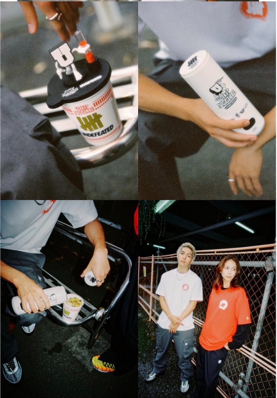 UNDEFEATED 联手日清食品旗下品牌 CUP NOODLE 合味道,以“More Than Cup Noodles”为概念,推出联名胶囊系列。涵盖杯面、T恤、棒球帽、碗筷餐具组合、沙漏计时杯盖和可携带烧水杯等丰富的产品。