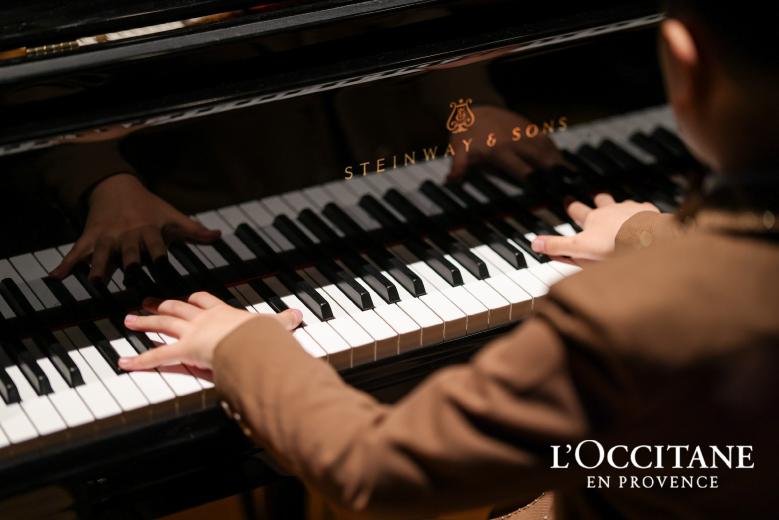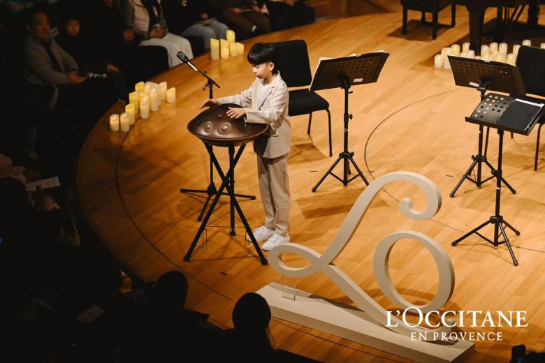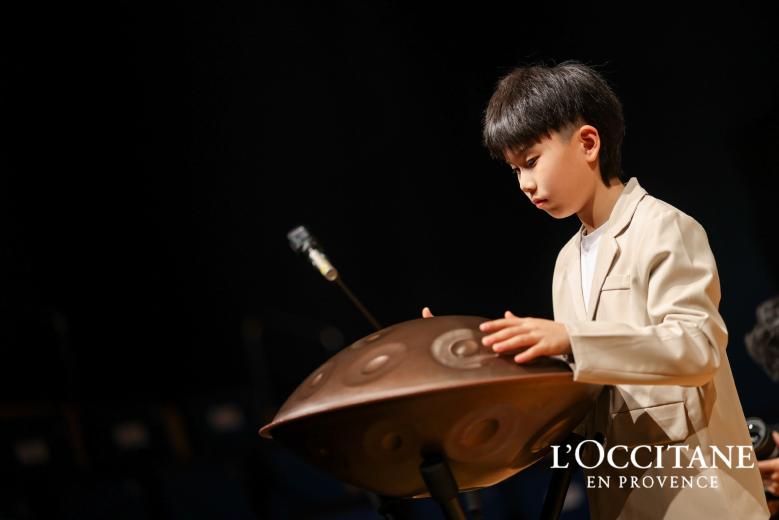 11岁的手碟表演男孩是普罗旺斯欧舒丹“关爱视力视觉”项目视力筛查的受益者,他以空灵之声拉开音乐会的序幕,如同破晓晨光,悄然唤醒心中暖意。随后,9岁钢琴盲童小朋友深情演奏《圣母颂》与《和你一样》,音符中满载期盼与力量,温柔而坚定的旋律,恰是品牌初心的回响,连接起台上与台下的心灵。