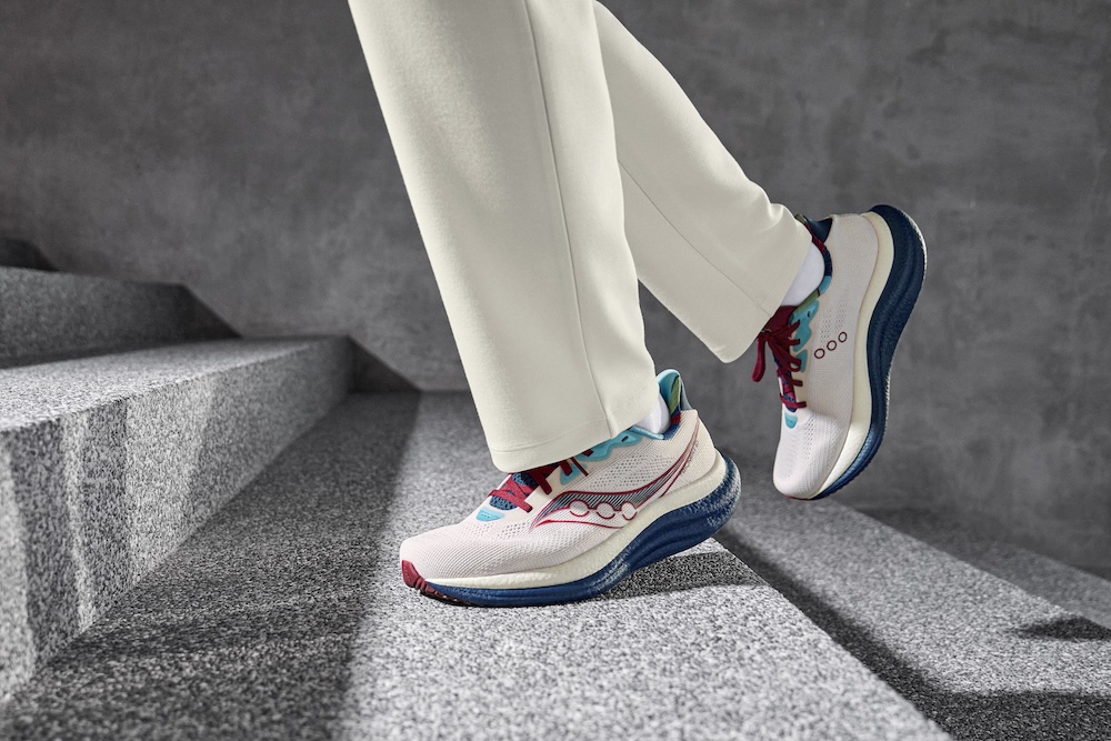 与服饰系列相呼应,鞋款部分亦呈现出全新亮点,Saucony索康尼在系列中推出特别配色 TRIUMPH 胜利 23,该鞋款凝聚品牌高缓震与舒适脚感的技术基因,适配冬季长距离慢跑和日常训练等多种跑步场景。中底采用进一步调校的 PWRRUN PB 科技,在更加轻质的基础上保持出色回弹与稳定支撑,助力跑者保持高效步频。鞋面设计沿用本系列红白蓝主题配色,彰显美式先锋跑步精神,在冷冽冬日中,依然以热血奔赴每一场训练。