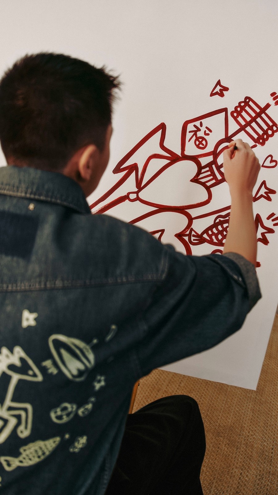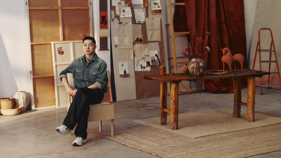形象大片置景灵感来源于Bolin的工作室。斑驳的墙面与工作台上,创作的痕迹随处可见。Bolin将马年专属视觉图案创作在承载记忆的新年物件上,这些艺术作品既蕴含“马”的不羁率性,亦承载了Golden Goose核心的「Co-Creation 共创体验」精神。