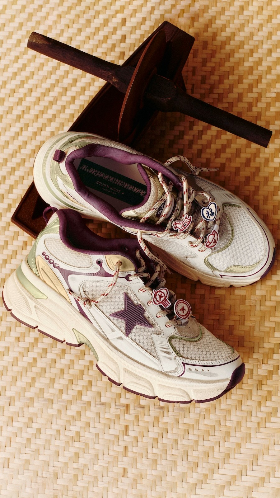 由Bolin倾力打造的的马年“踏梦”共创系列焕新演绎 Golden Goose 经典的 Super-Star 与 Light-Star 鞋履,以白色与深勃艮第红色为主色调,缀以金色细节,营造出大胆前卫且经典永恒的时尚风格。