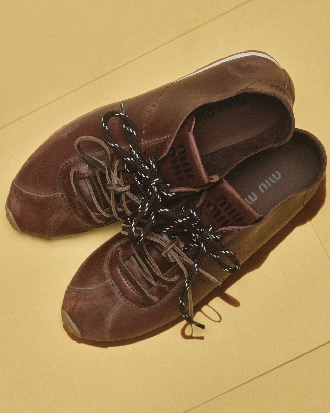 新年伊始,Miu Miu标志性运动鞋自成当季焦点:轻盈的Plume系列携浅褐色全皮革鞋面亮相;Tyre运动鞋取材清爽白色科技面料与麂皮,搭载瞩目天然橡胶鞋底,愈显坚实挺括质感。延续Custom Studio定制项目,邀约顾客随心搭配精选饰件,打造专属独特运动鞋。写意花朵、绒球与流苏装点的精致缀饰成就独一无二的鞋履,承载穿着者期许与梦想的独一无二之作。
