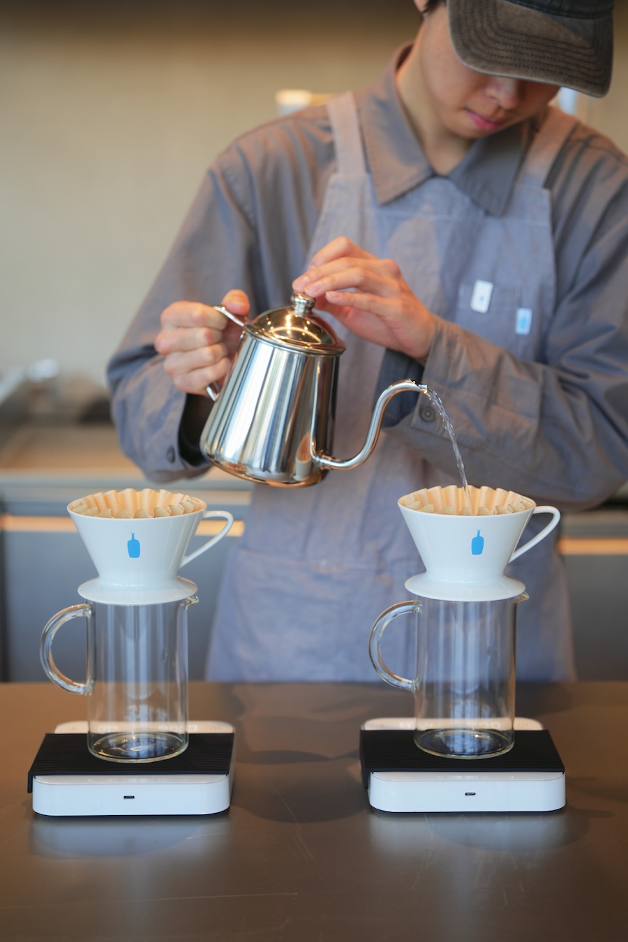 作为蓝瓶咖啡一种全新门店概念,强调功能性及互动的空间以简洁形式呈现,强化门店里咖啡吧台的中心位置。在这里,吧台不只是操作台面,而是承载点单、冲煮与咖啡分享的场所。咖啡的制作过程被完整地保留在视线之中,也给予咖啡爱好者更多与蓝瓶咖啡师的交流空间。