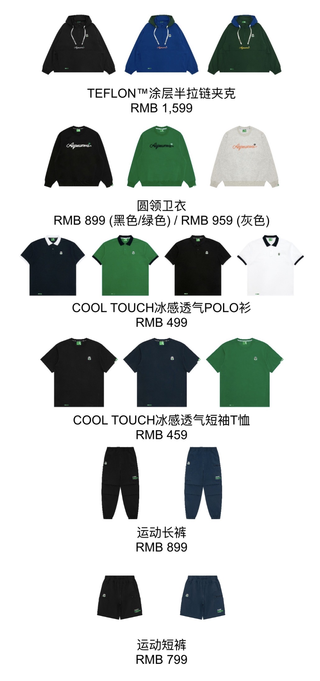 系列聚焦大胆革新的科技面料与色彩组合,为传统运动服饰注入源自街头的潮流基因。作为核心设计视觉的「AAPE UNION」主题标识贯穿全系列产品之中,并赋予具有专属辨识度的特制标签。除了经典简约的黑灰色调,服饰选取富有动感的绿色、蓝色为主调,呼应匹克球场地的经典配色,彰显竞技运动的激情与活力。系列服饰采用轻盈舒适的高性能面料打造,其中TEFLON™涂层拥有绝佳的防泼水、防油污表现,COOL TOUCH冰感透气面料则为酣畅挥汗瞬间提供干爽体感。