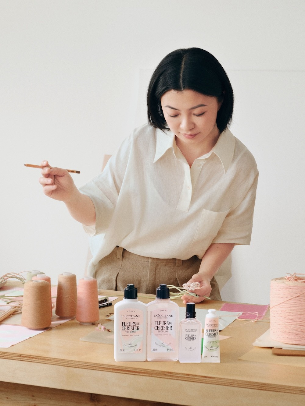 织物艺术家Amber Chen以织物为语言,在经纬交错间与自然深度对话。这份对自然律动的感知,与普罗旺斯欧舒丹“深化美、人与自然的生命联结”的品牌愿景不谋而合。本次「春光造物」艺术合作,普罗旺斯欧舒丹携手艺术家以春日初樱与清茶邂逅的芬芳时刻为起点,将普罗旺斯欧舒丹春日三原色悄然融入织物肌理,让设计在工艺与触感之间层层生长。香气不再转瞬即逝,而成了一场可以被穿戴的感官旅程。同时,这是一次关于生活美学倡导的尝试:把春天穿在身上,让每一件作品都浸染与季节共生的情感与温度。