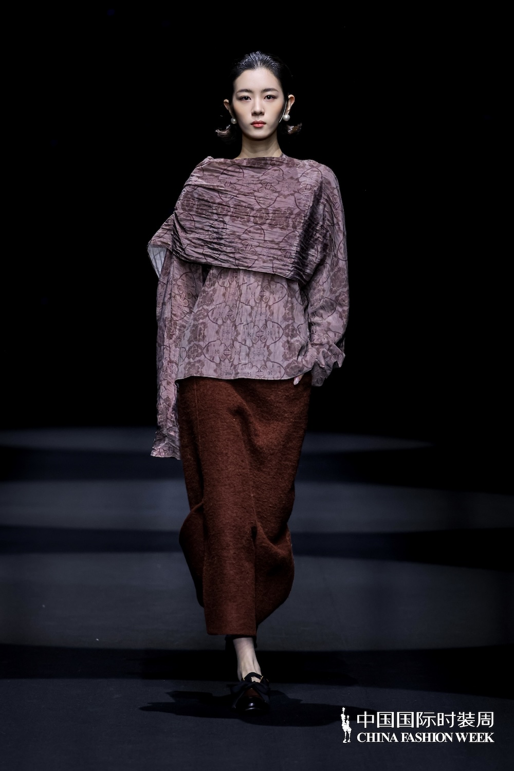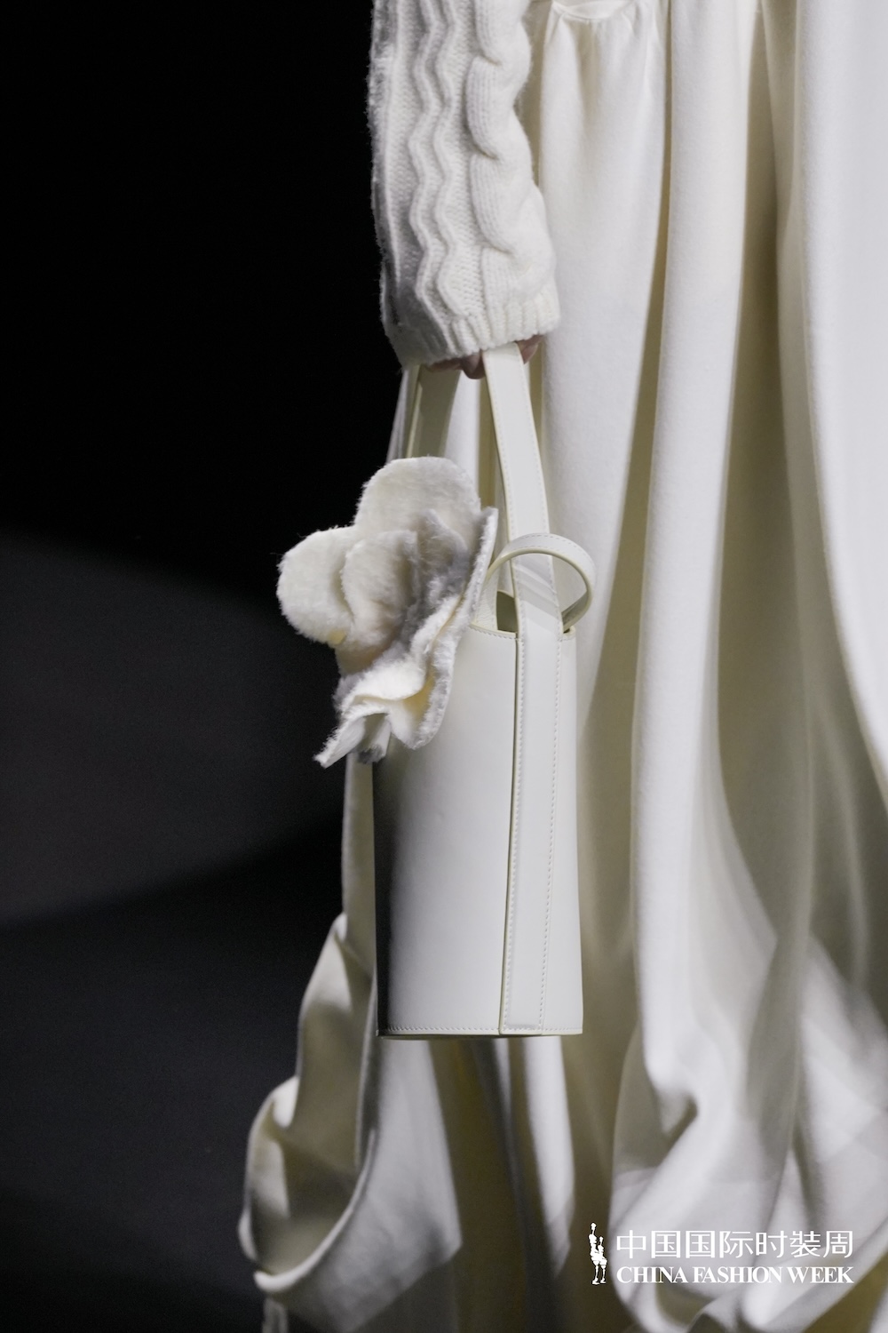 首次登陆中国国际时装周,设计师陈巧萍保持一贯含蓄内敛的风格,见花似藏,不扭捏但极为细腻,如肌肤般柔软的疗愈质感,被置于雪域辽阔且澄澈的背景下,这是她对当代精神的深度转译。手工立体花朵以多形态呈现,平面花型、立体造型与层叠缝制的手法,皆是设计师温度的延展,粗纺羊毛、柔软丝绒与肌理感针织的材质碰撞,隐喻着坚韧与温暖并存的生命状态。