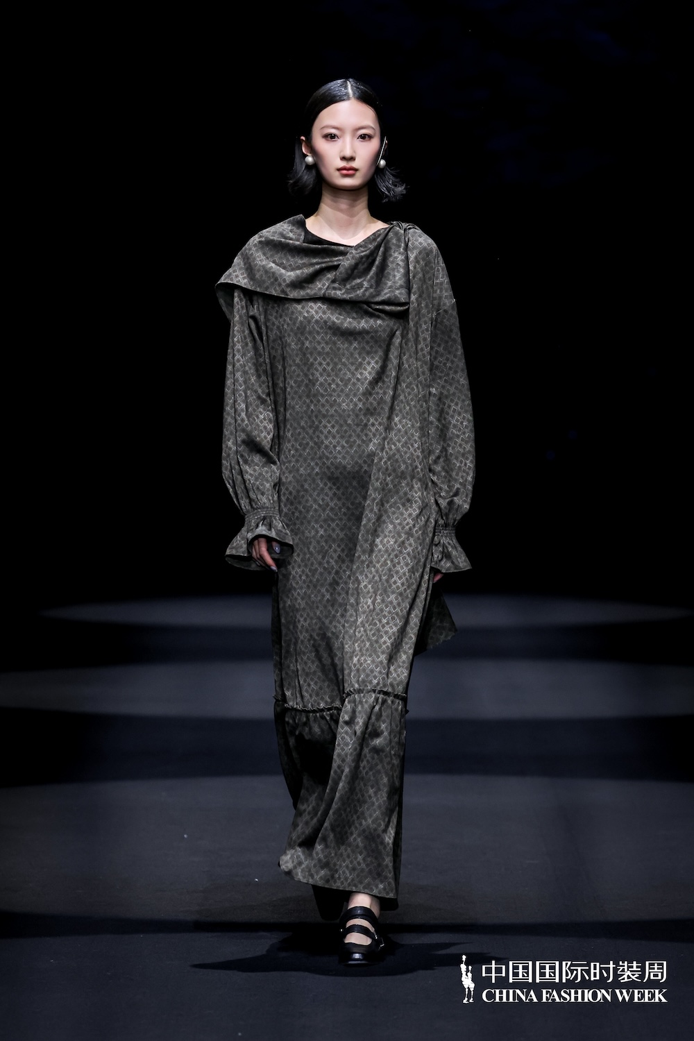 尾声则将色彩归于大地的温暖与浓郁,以咖色为主基调的菱形格纹花苞连衣裙,与兼具披肩设计的大衣式外套,均极具设计分量感,如同故事终章迸发的希望,含蓄而有力量。