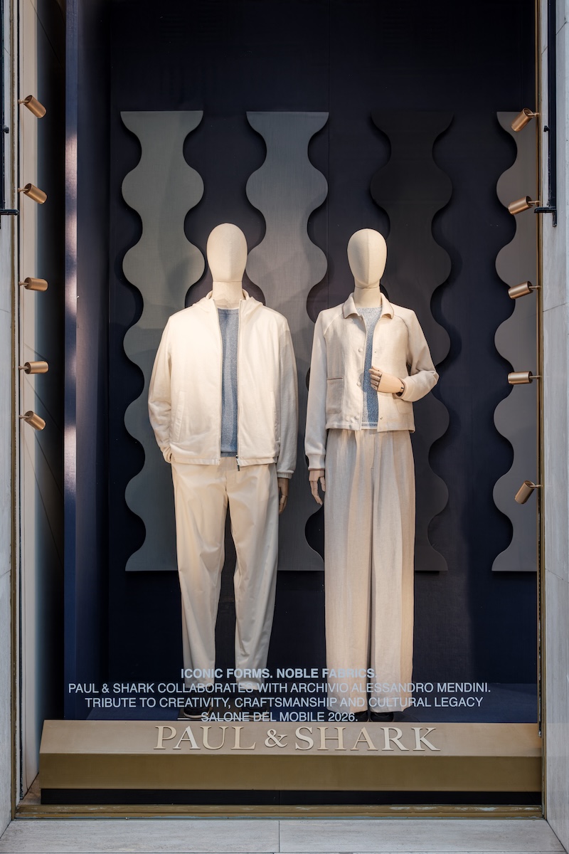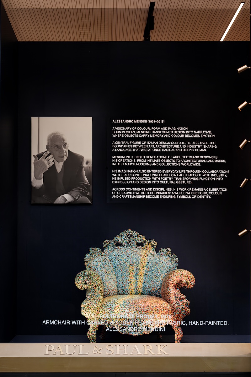 在整个设计周期间,品牌位于米兰蒙特拿破仑大街16号的旗舰店橱窗将特别展出后现代主义设计的经典之作——Proust 扶手椅,亦同步呈现 Mendini 标志性风格图案在 Paul & Shark 蓝色面料中的焕新诠释。整组装置艺术于空间中构建出一场跨越设计语言的对话,汇聚两大意大利卓越典范,致敬本真的创造力与隽永的匠艺精神。